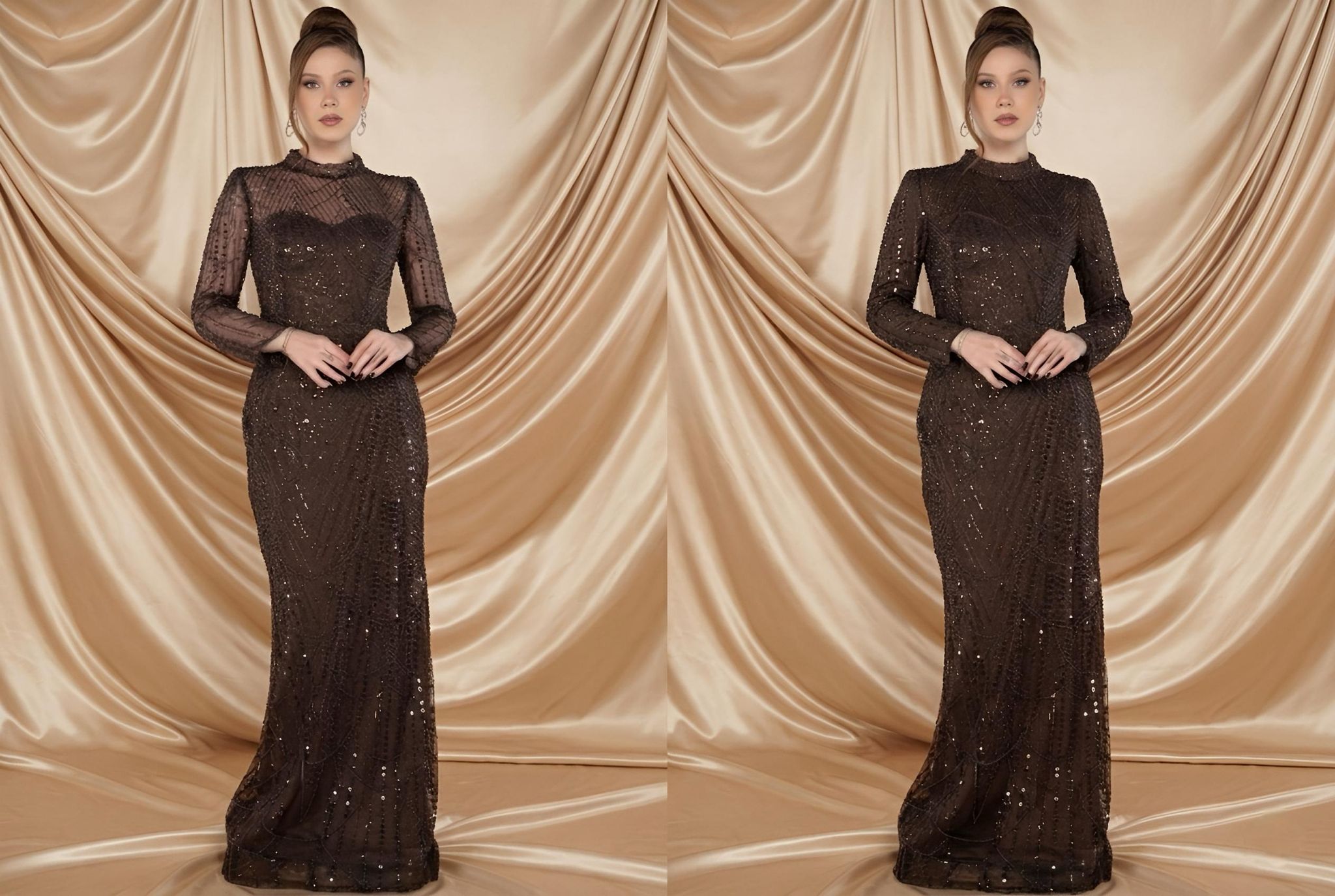 Uzun Dik Yaka ve Uzun Kollu Abiye