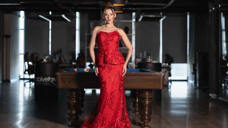 Kırmızının büyüsünü, zarif bir siluetle birleştiren bu özel tasarım, gecenin en unutulmaz görünümlerinden birini yaratıyor. Straplez yaka formu, omuzları zarifçe vurgularken; üç boyutlu çiçek işlemeleri elbiseye sanat eseri niteliğinde bir dokunuş kazandırıyor. Her bir çiçek motifi, dikkatle yerleştirilmiş parlak taşlarla birleşerek ışıltılı bir görünüme dönüşüyor. Detaylarda Gizli AsaletBel kısmındaki peplum detayı, vücut hatlarını zarif biçimde ortaya çıkararak feminen bir siluet…