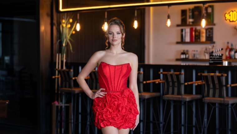 Sezonun en dikkat çeken modellerinden biri olan bu kısa abiye, klasik zarafeti modern dokunuşlarla birleştiriyor. Halter yaka kesimi, parıltılı kumaşı ve etek ucundaki tüy detayıyla hem sade hem de özgün bir görünüm sunuyor. Gösterişli olmaya çalışmadan farkını ortaya koymak isteyenler için birebir. Zarif ama sıkıcı değil, enerjik ama abartısız. Bu elbise, tarzını net bir şekilde ortaya koymak isteyenler için akıllı…