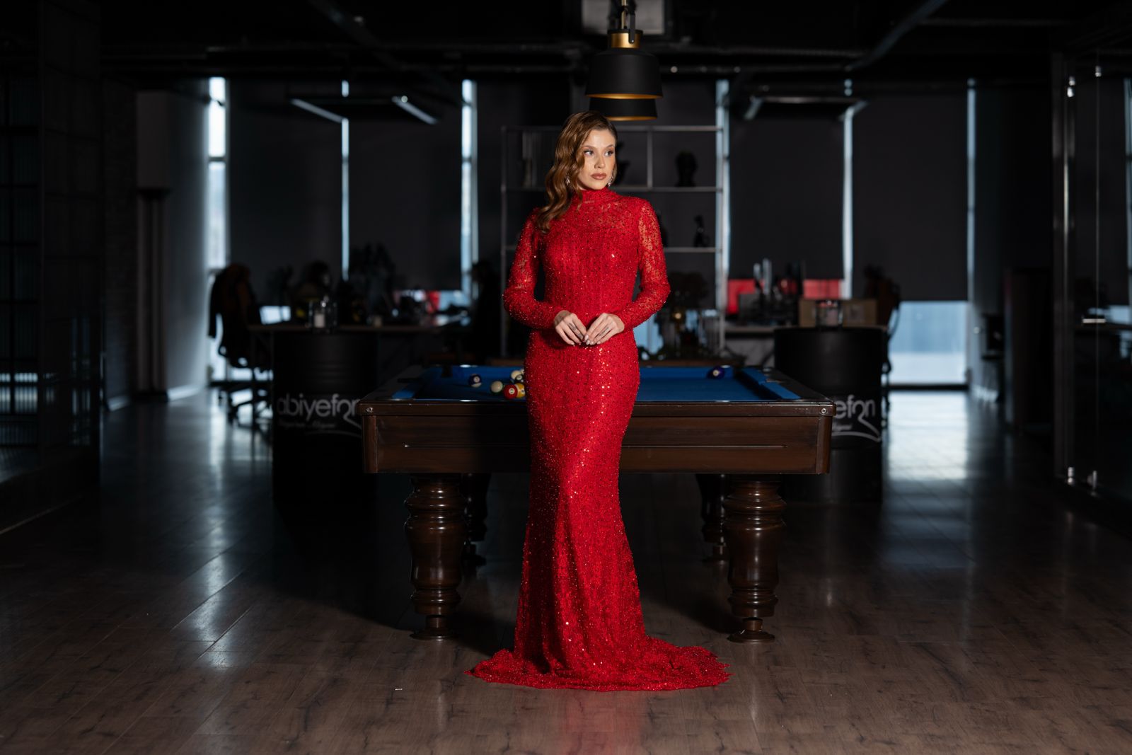 Modern çizgisi ve iddialı kırmızı tonuyla tasarım; nişan törenlerinden gala davetlerine, yılbaşı gecesi şıklığından özel kutlamalara kadar geniş bir kullanım alanı sunuyor. Işıltının en cesur hâlini taşıyan bu abiye, hangi ortamda yer alırsa alsın güçlü kadınların imzası hâline geliyor.