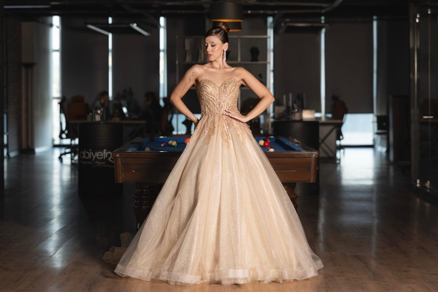 Taş işlemeleri, inciler, dantel aplikeler ve parlak taşlarla süslenen prenses abiyeler, kraliyet davetlerinden ilham alınarak hazırlanır. Göğüs kısmındaki zarif detaylar ya da bel hattını vurgulayan ince işlemeler, ihtişamı dengeli bir zarafetle buluşturur. Bu sayede hem asil hem de modern bir görünüm elde edebilirsiniz.
