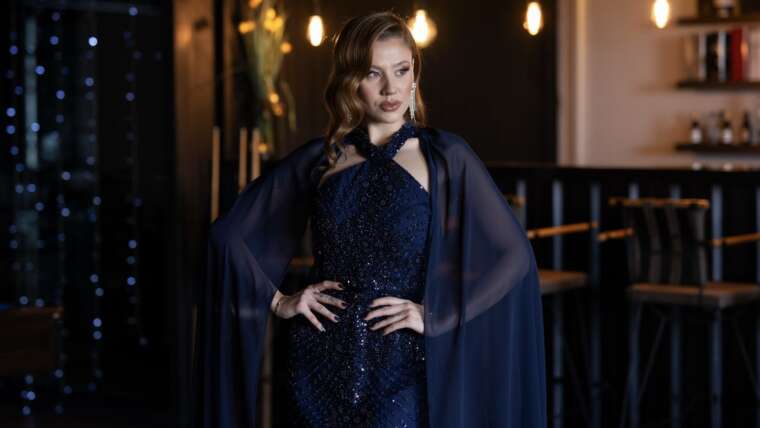 Kuralların geri planda kaldığı, duruşun öne çıktığı anlar için tasarlanan bu abiye; klasik gece elbisesi algısını baştan tanımlar. Gücünü ışıltının yoğunluğundan değil, detayların doğru kullanımından alan tasarım, bakışları üzerine çekmeden fark edilir olmayı başarır. Lacivert Işıltının Zamansız GücüDerin lacivert tonu, tüm yüzeye yayılan pul ve boncuk işlemelerle birleşerek sofistike bir ışıltı sunar. Işıkla birlikte hareket kazanan yüzey, tasarımı klasik abiye…