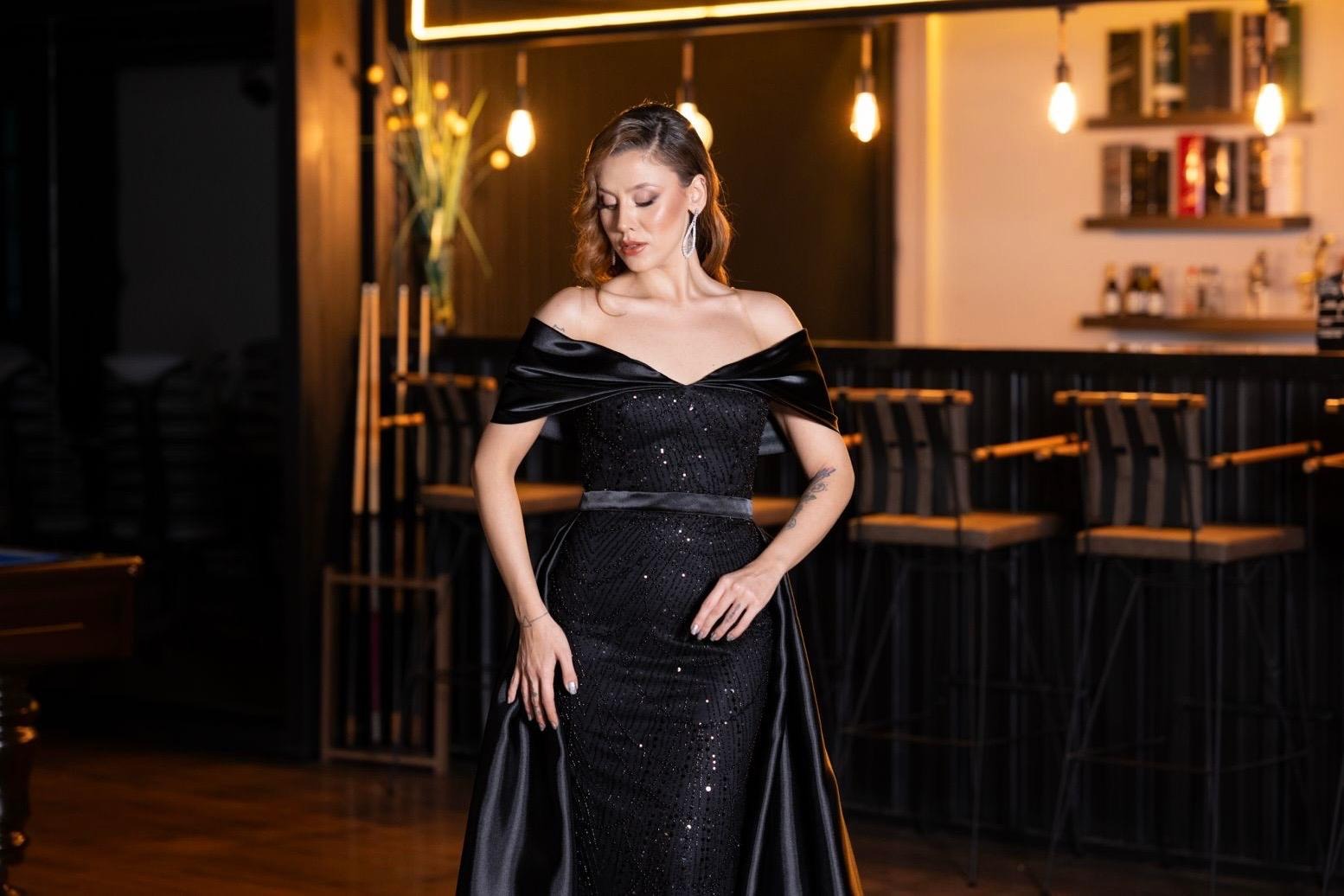 Görseldeki gibi kayık yaka saten detaylı, vücuda oturan siluetler; modern, güçlü ama bir o kadar da feminen bir duruş sergiliyor. Abartıdan uzak, ancak her detayıyla etkileyici bir görünüm sunuyor. Davetlerde veya özel akşamlarda bu tarz bir modelle zarafetin en sofistike halini yansıtabilirsiniz.