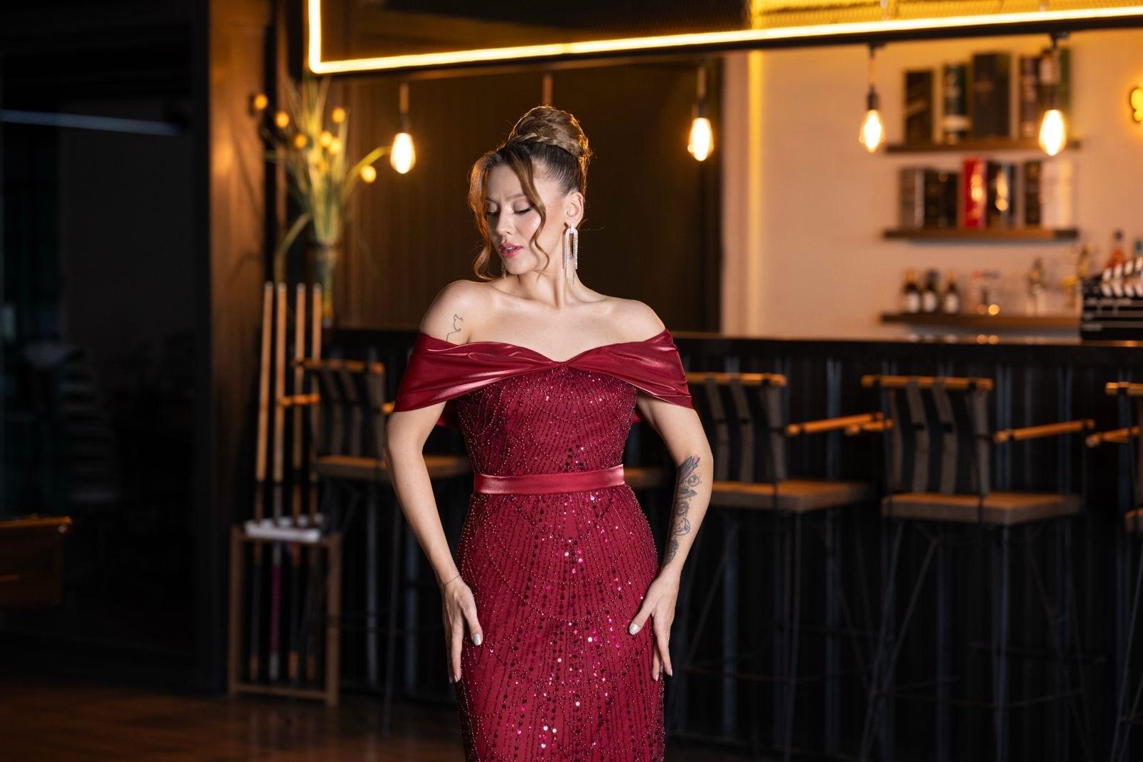 Renk paletinde gece mavisi, yakut kırmızısı ve zümrüt tonları güçlü duruşu temsil ederken, ekru ve şampanya gibi yumuşak seçenekler söz, nişan ve nikâh kutlamaları için sofistike bir alternatif oluşturuyor. Mat yüzeyli krep ile ışıltılı taş işlemeyi aynı parçada buluşturan tasarımlar, tek bir aksesuarla gündüz kokteylinden akşam davetine geçiş yapmayı kolaylaştırıyor.