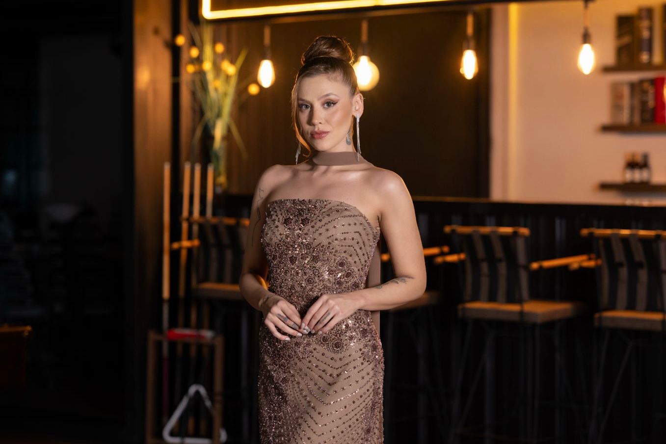 Bu tarz elbiselerde takı seçimi minimal olmalı. Uzun küpeler, zarif bileklikler ve sade bir topuz bu görünümü mükemmel tamamlar. Ayakkabı ve çanta seçiminde ise nude, şampanya veya altın tonları mocha renginin sıcak ışıltısını destekler.